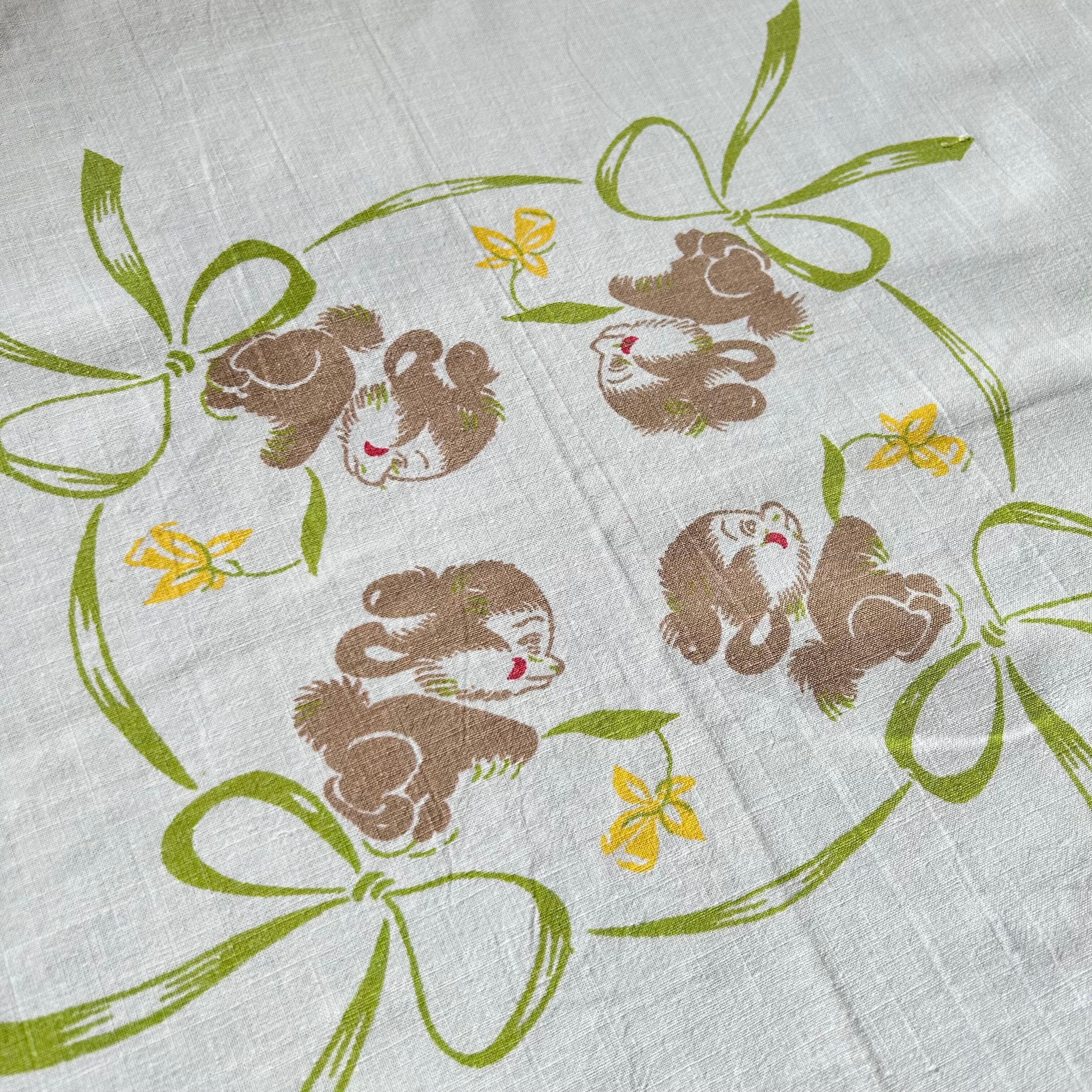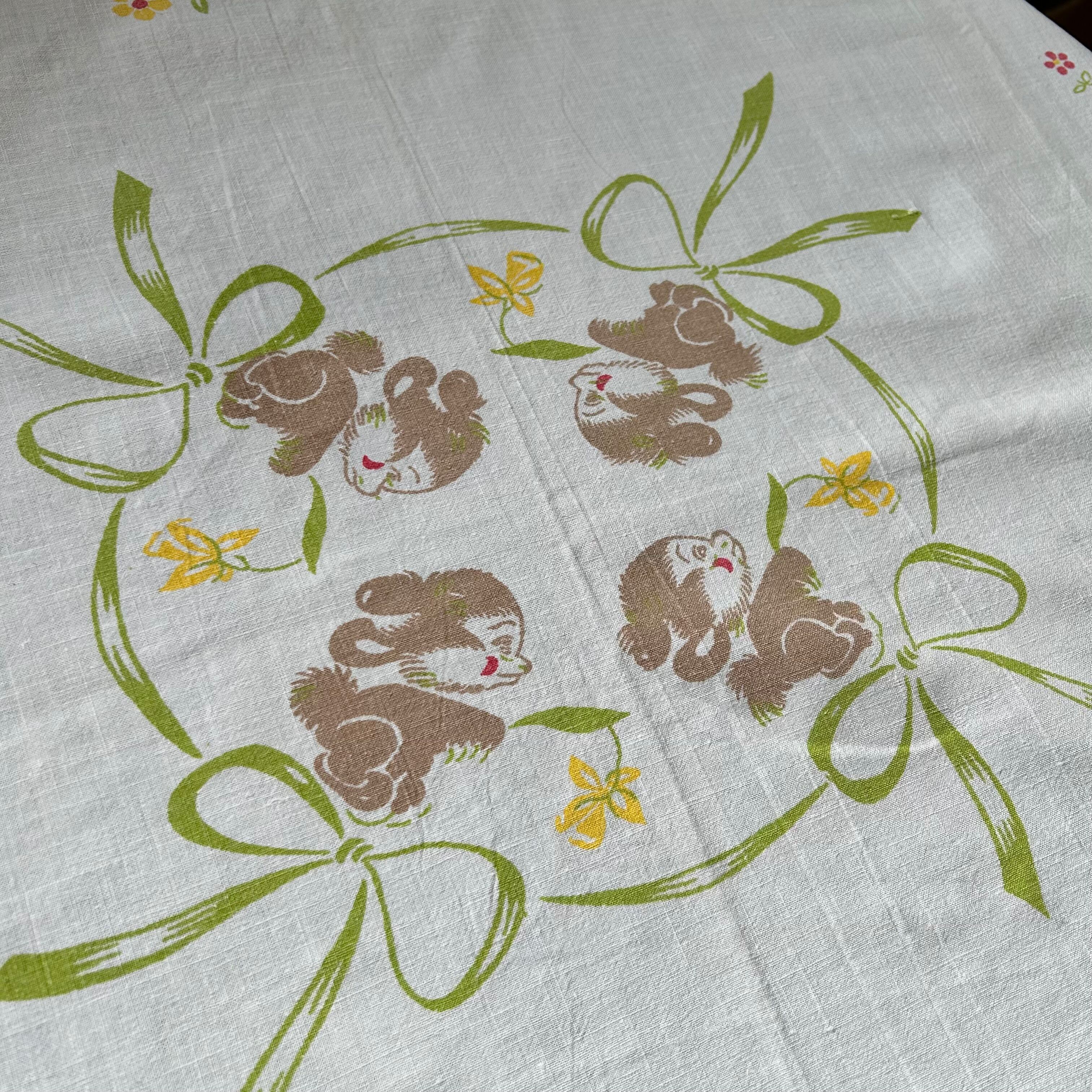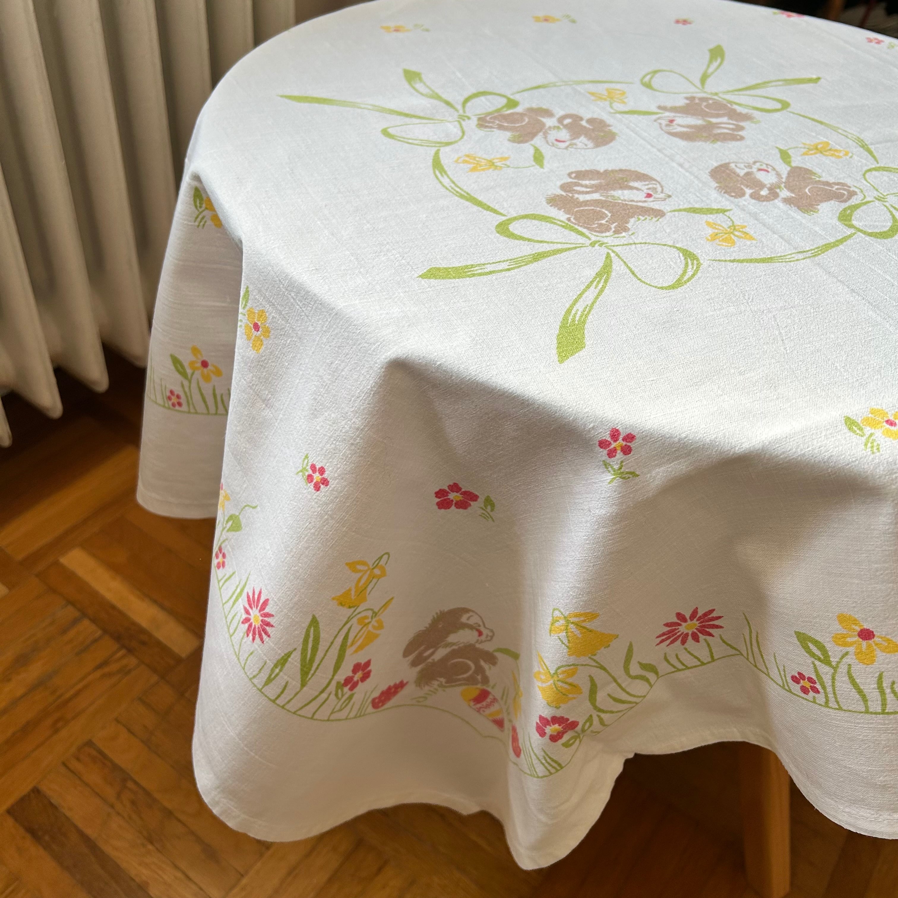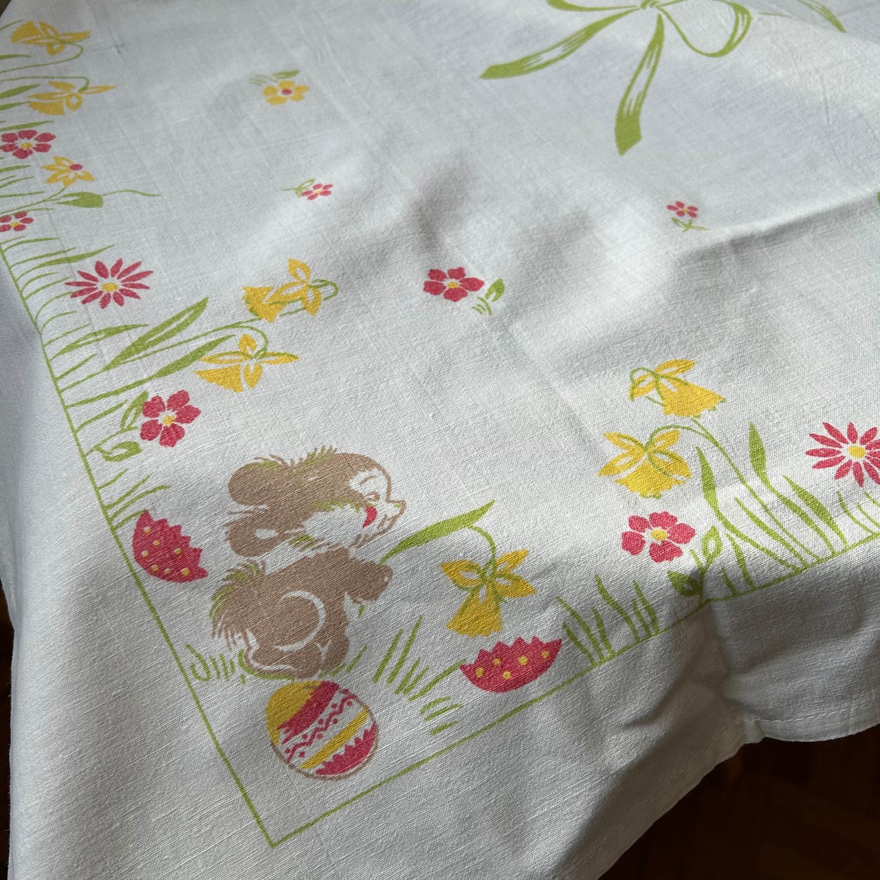 ユニークな表情のうさぎとリボンのコンビネーションがかわいいイースターのクロスです。