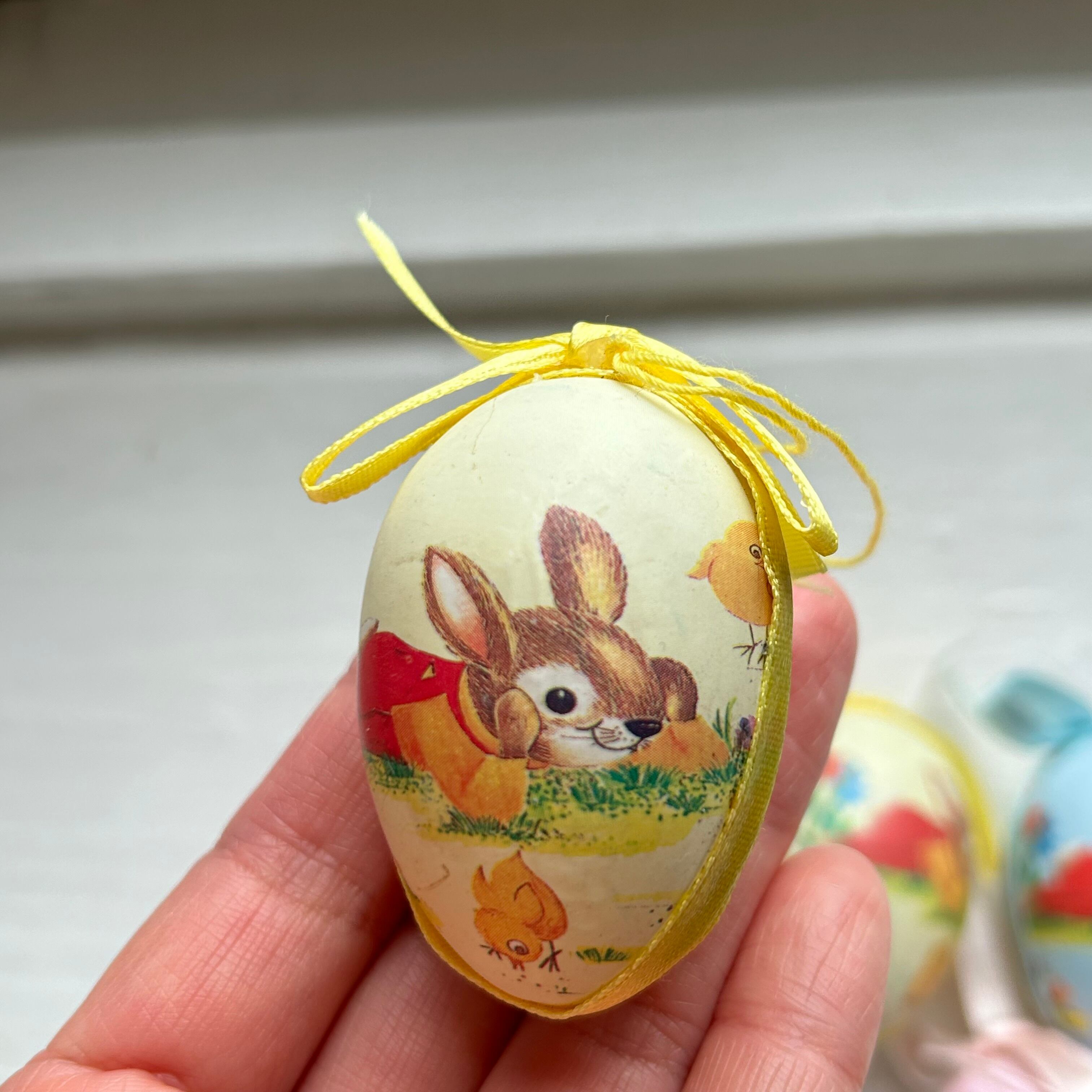 パステルカラーがかわいい、プラスチックにうさぎのイラストがプリントされたイースターエッグ5個入りのセットです。