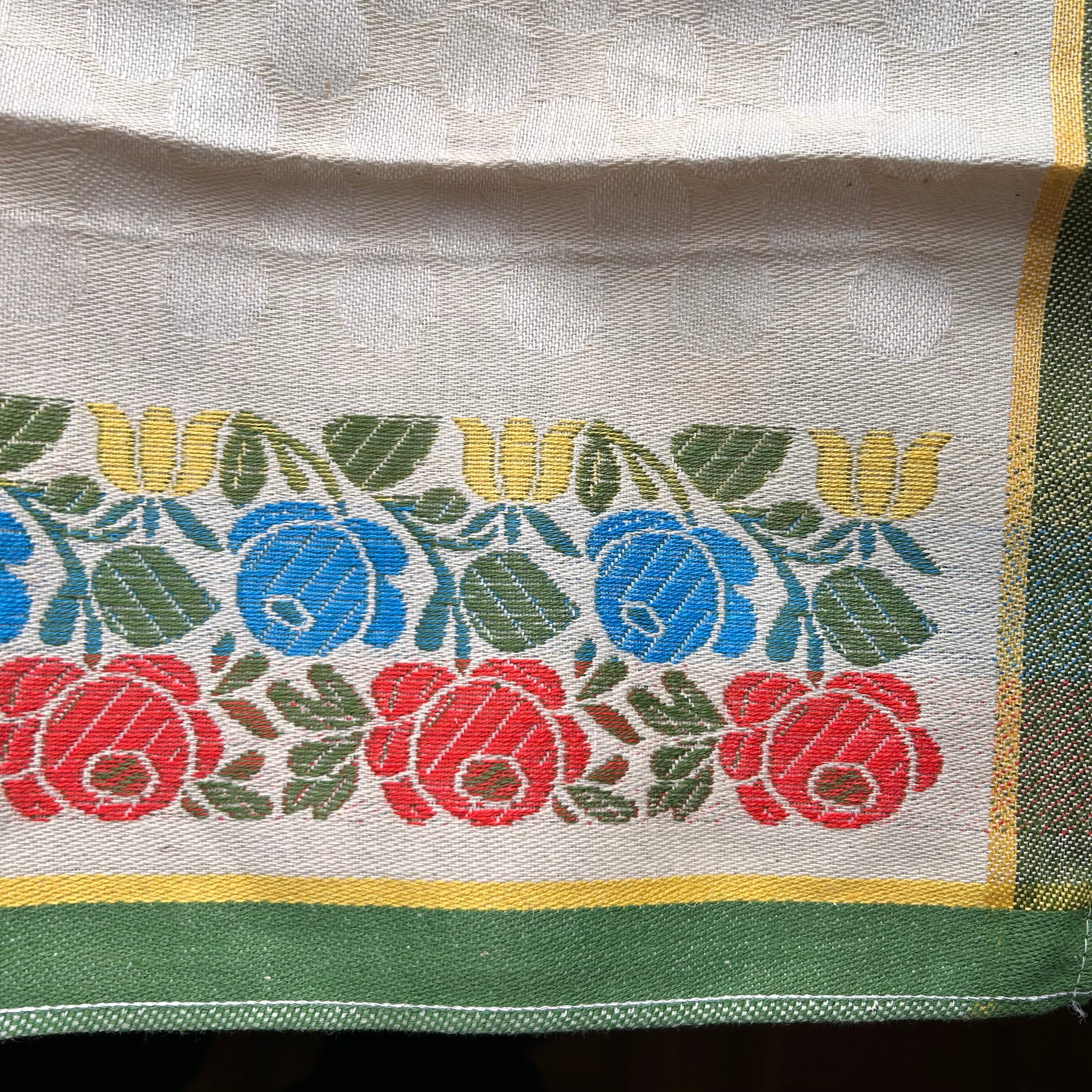 ハンガリー刺繍のような柄がかわいい厚手のキッチンクロス(ティータオル)。