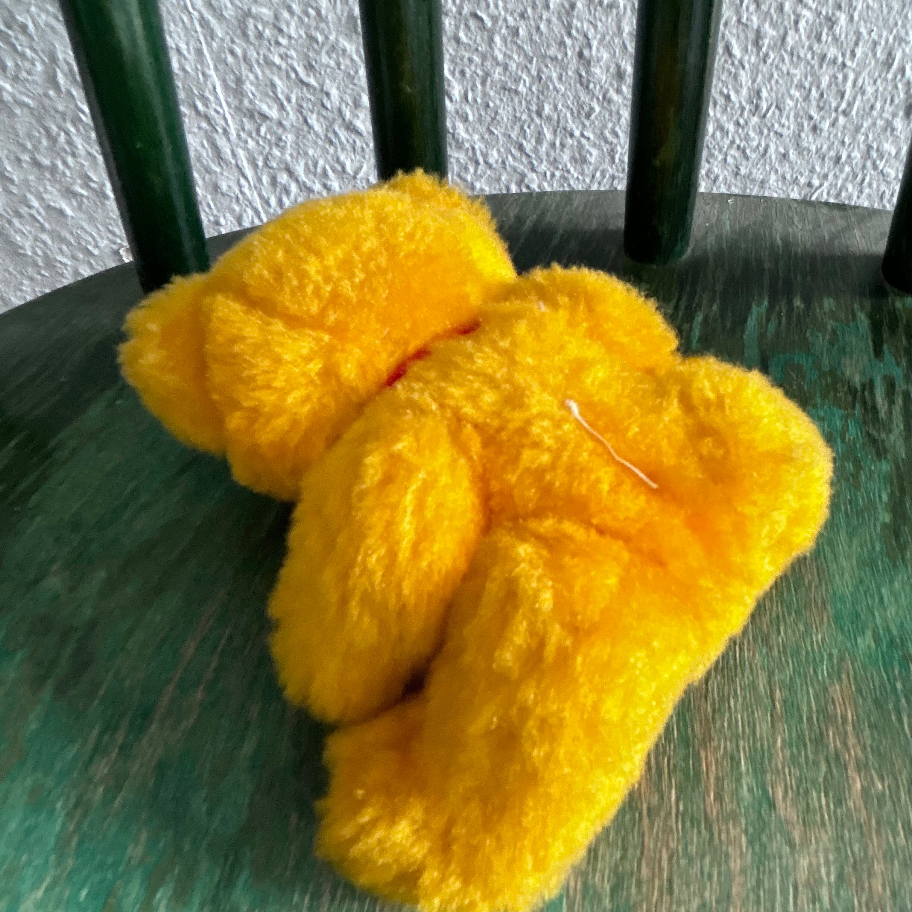 状態など:口元の下に玉止めされた白い糸が見えます。背中側にタグを切ったあとがあります。