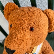 オーバーオールを着たテディ