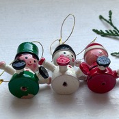 両手を広げて、お座りする姿が愛らしい木製のツリーオーナメントです。