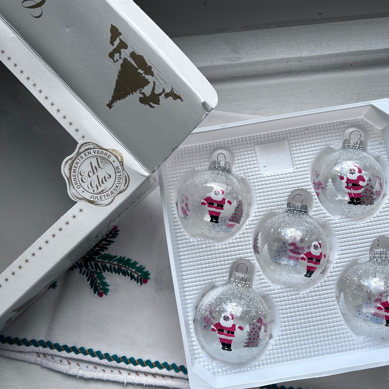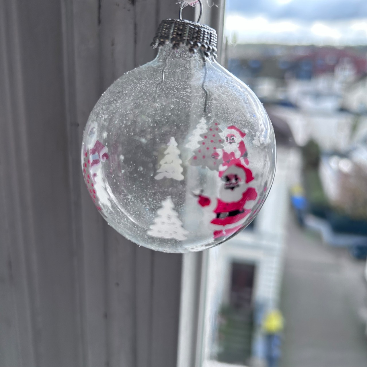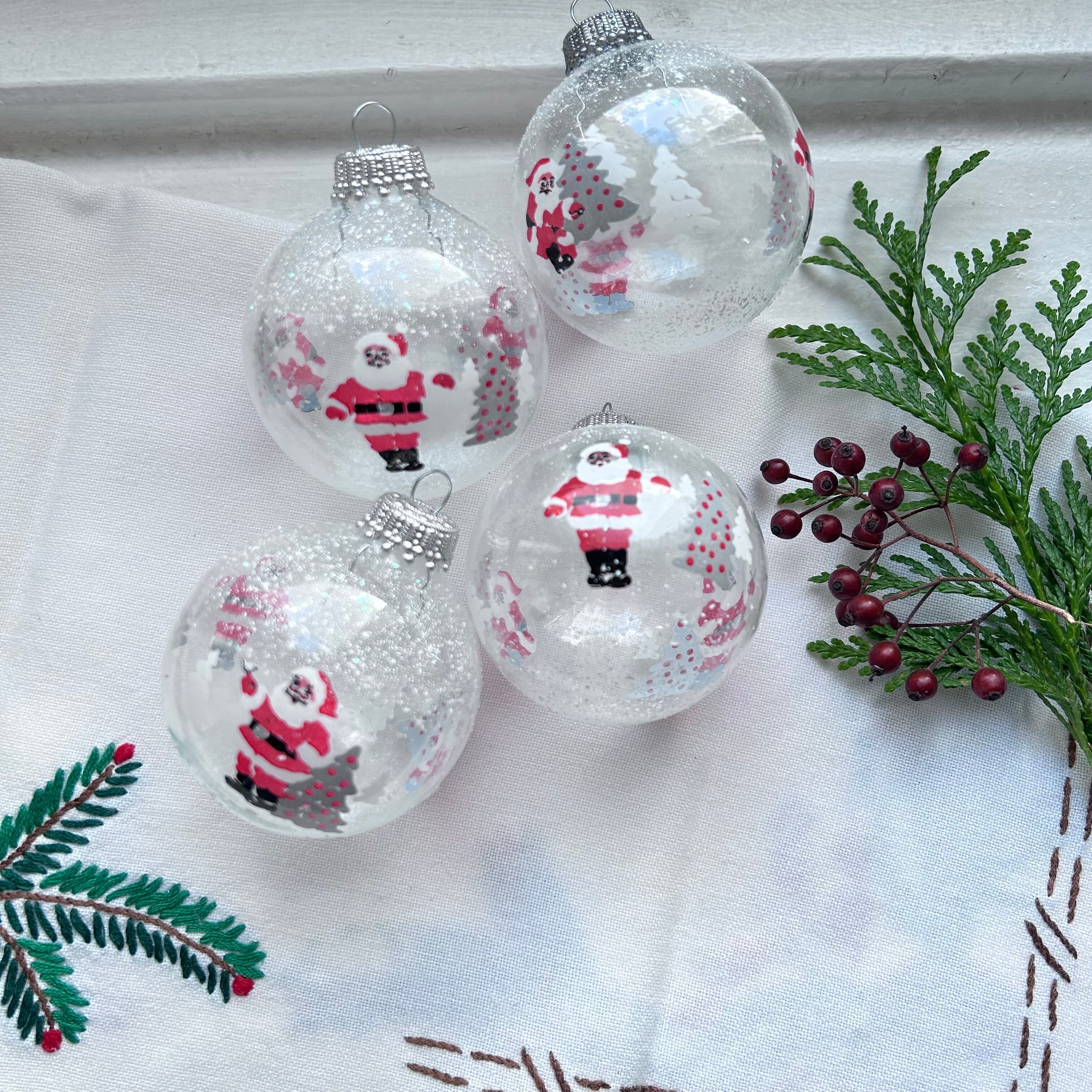 透明なガラスに、ツリーとサンタがかわいいオーナメントです。