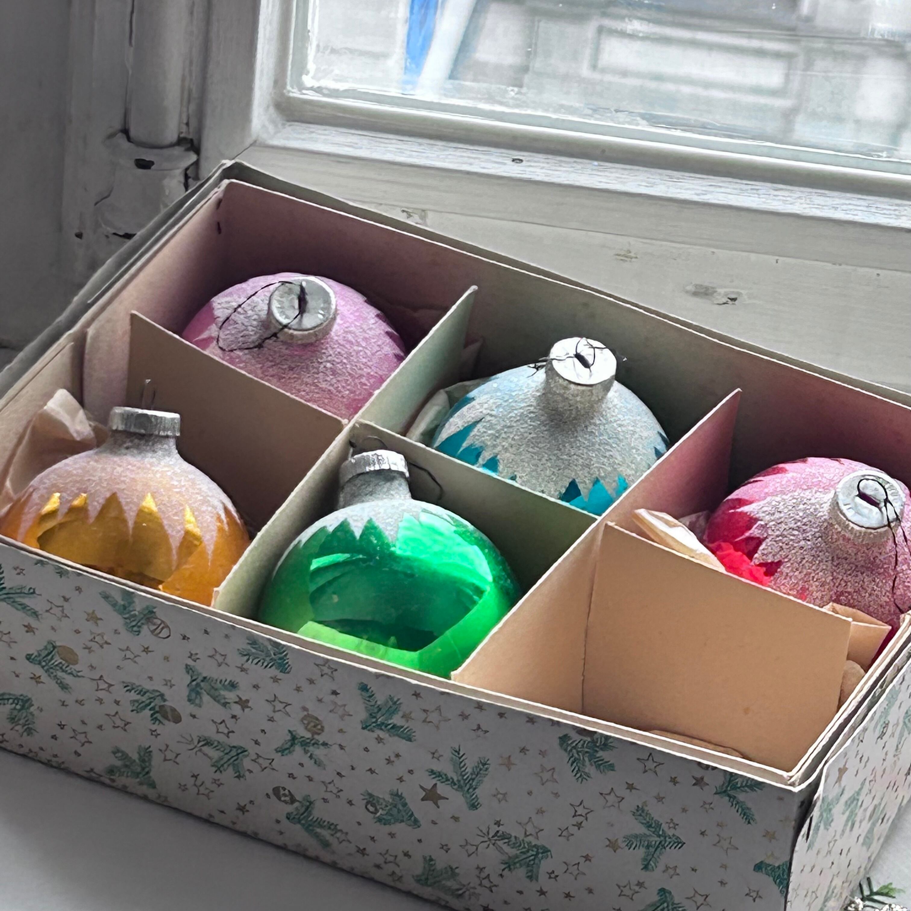ノスタルジックな雰囲気の5つのカラーがそろった、グラスオーナメント。