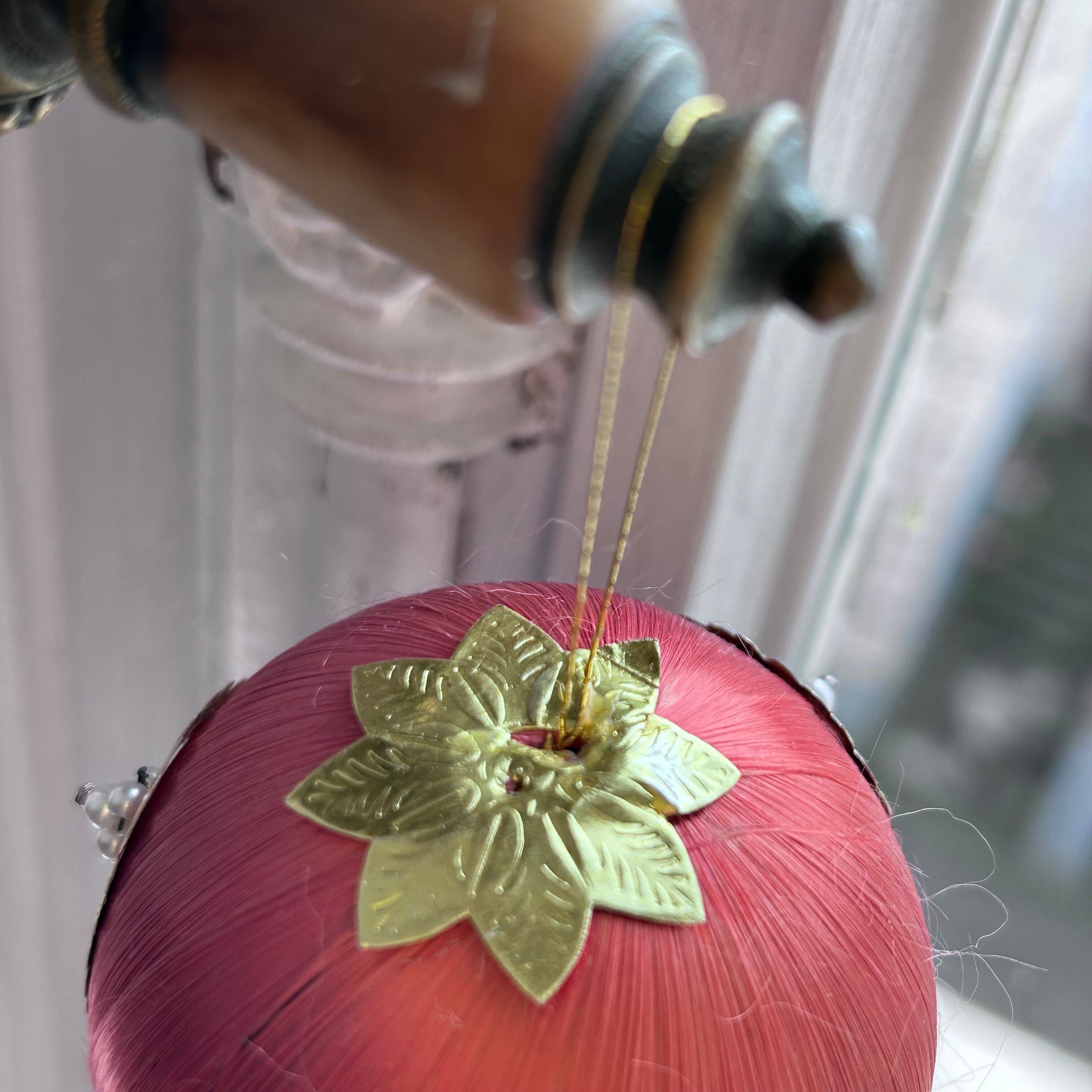 ピンクの糸巻で懐かしい雰囲気のオーナメントです。