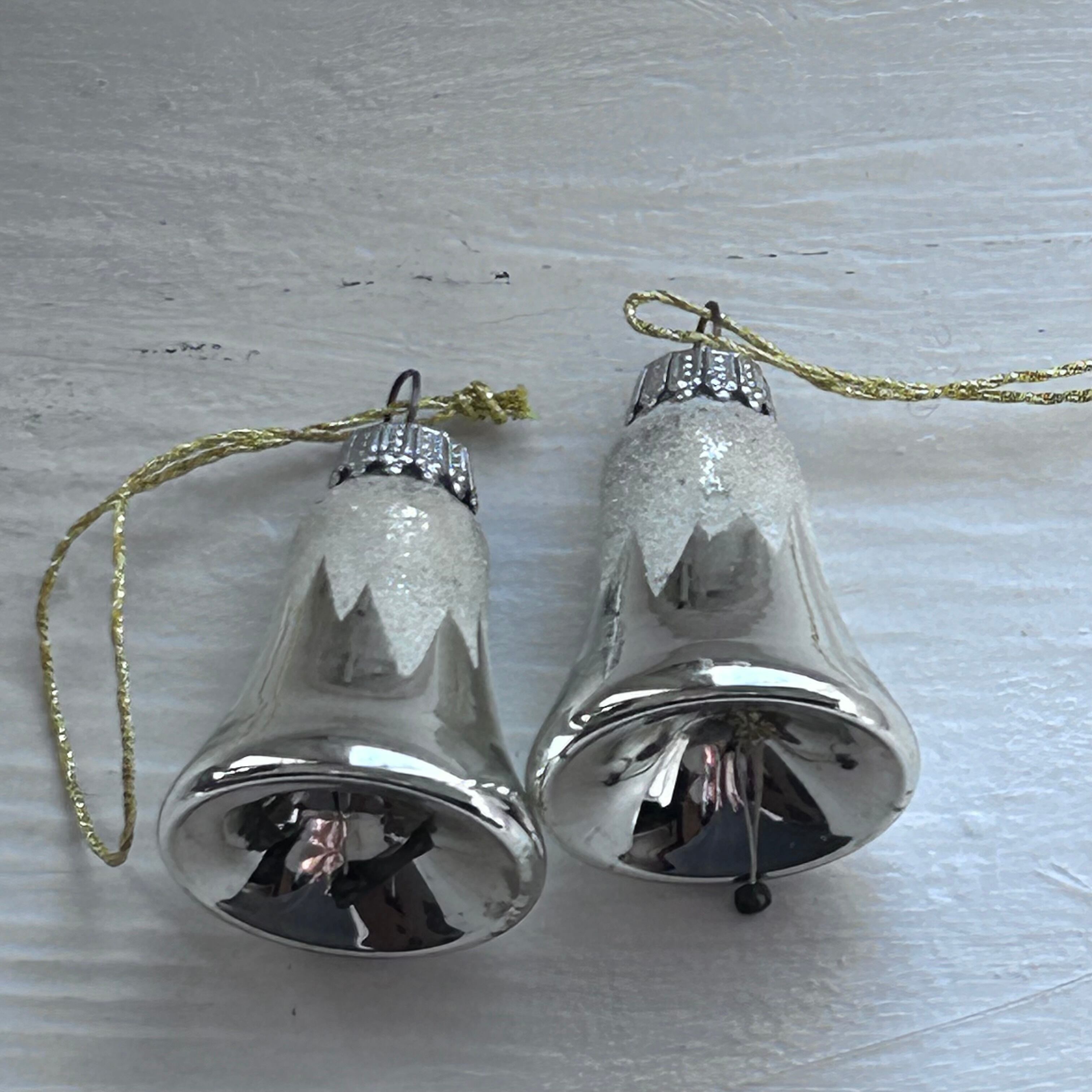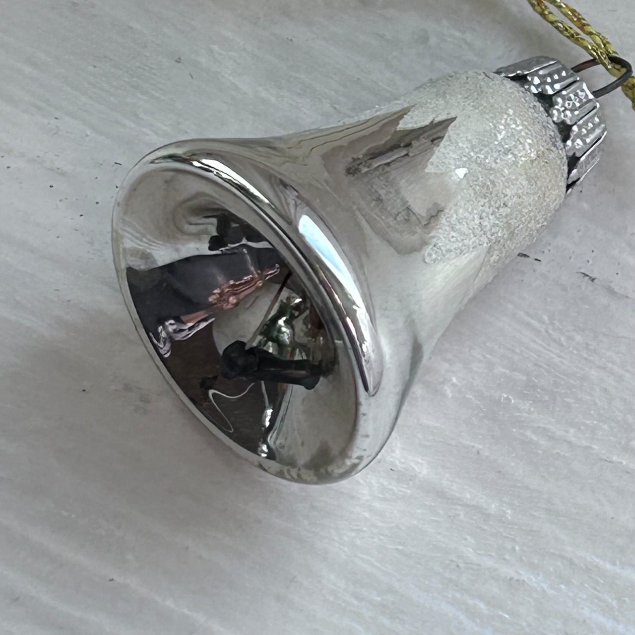 ベル型のガラスオーナメントです。金属のような小さな玉が付いていて、カラカラと乾いたような低めの音が鳴ります。西ドイツの時代に作られたものです(片方にだけWestという印が入っています)。