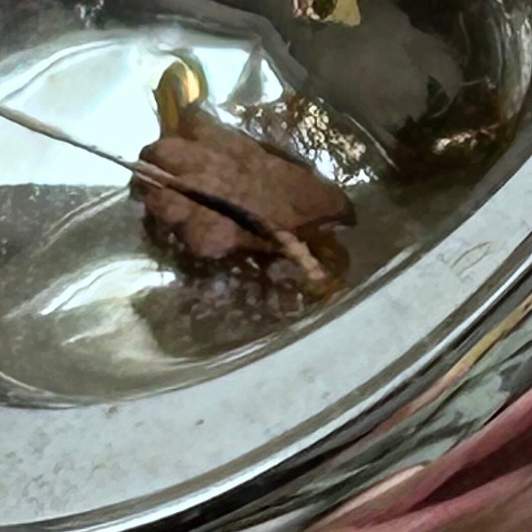 ベルの内側で玉を留めた箇所にはドレスデンペーパーのような小さな花の装飾が付いています(写真9)が、片方のベルは、花のフォイルがはがれ、中の紙が見えています(写真10)。